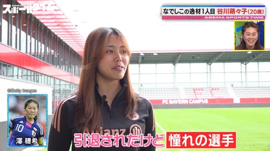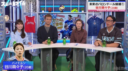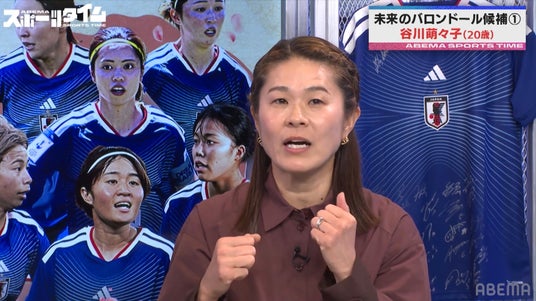 また谷川選手は、「バロンドールを獲るのがずっと夢」と自身の夢を明かしつつ、「澤穂希選手がW杯決勝でコーナーキックを決めたシーンはずっと心の中に残ってる。そういうチームが苦しい時、ゴールを決めて救える選手になりたい」と、澤氏への強い憧れも披露。澤氏は「貪欲に得点に絡むシーンも多く、非常に楽しみな選手の1人」と今後への期待を語りつつ、谷川選手からの熱い想いに「直接会って話したことはないので、どこかで対談できたら嬉しい」と笑顔でコメント。川崎氏も「ABEMAでやりましょう!」と応じ、スタジオは盛り上がりを見せました。