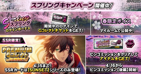 期間中、ビンゴミッションやログインボーナスを開催しているほか、マイルームでは「春」に関するボイスを公開中です。詳細はアプリ内お知らせをご確認ください。