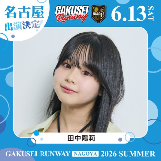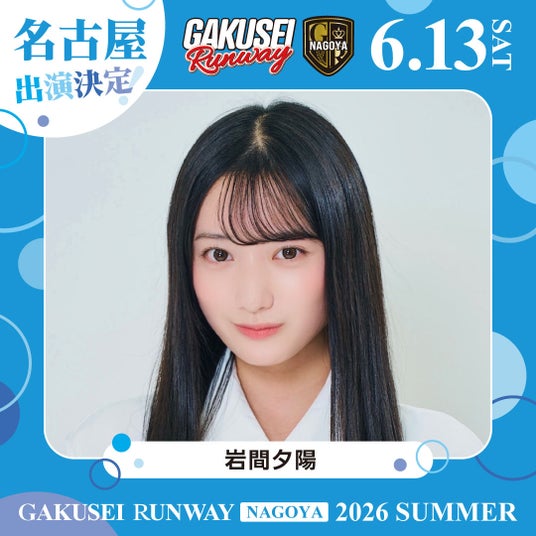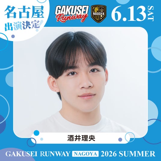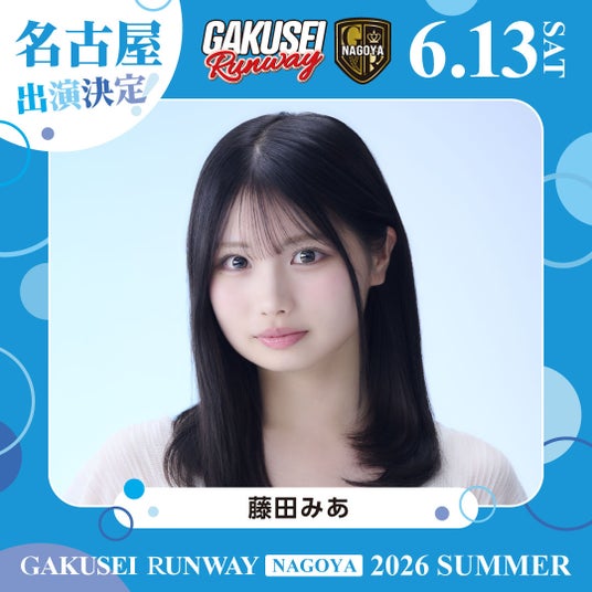 開催名称 GAKUSEI RUNWAY 2026 SUMMER in NAGOYA開催日程 2026年6月13日(土) 開場 15:30 開演 16:00 終演 20:30