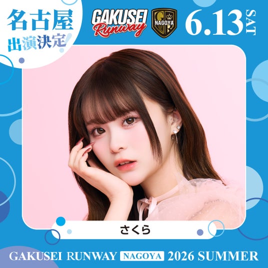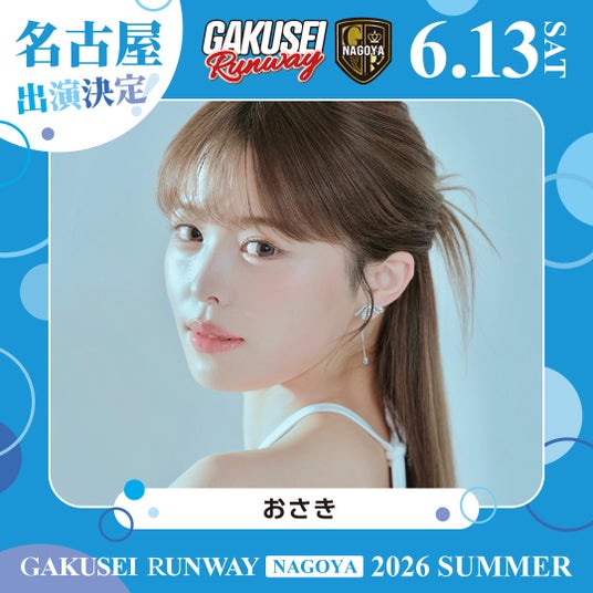「GAKUSEI RUNWAY 2026 SUMMER in NAGOYA」開催につき、 ゲストの出演を発表しました。 Z世代から絶大な人気を誇るゲストのランウェイや、アーティストライブは学生ランウェイでしか見られないスペシャルなステージでお楽しみいただけます。