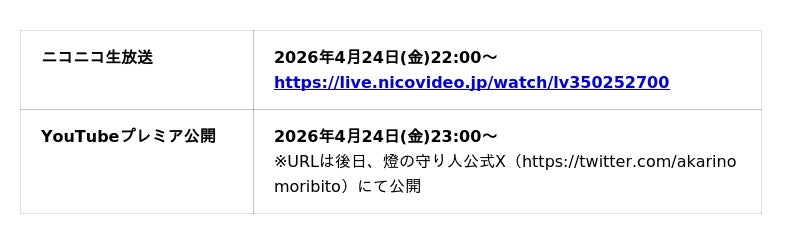 【公式サイト】https://akarinomoribito.com/