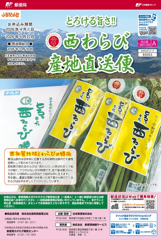 株式会社西和賀産業公社(岩手県西和賀町/代表取締役 内記和彦)は、雪解けとともに旬を迎える西和賀町を代表する特産品「西わらび」の予約受付を開始いたしました。
