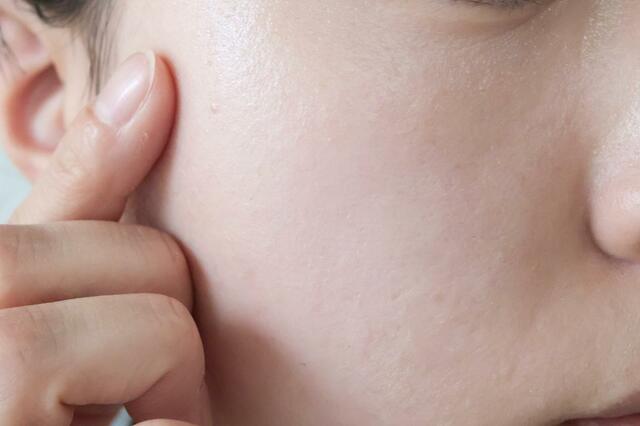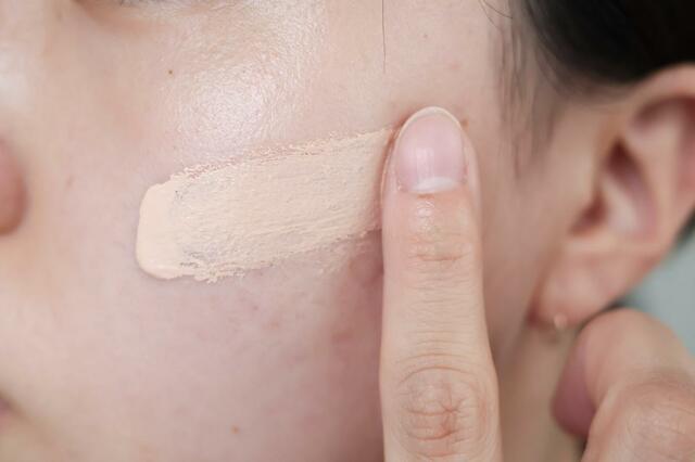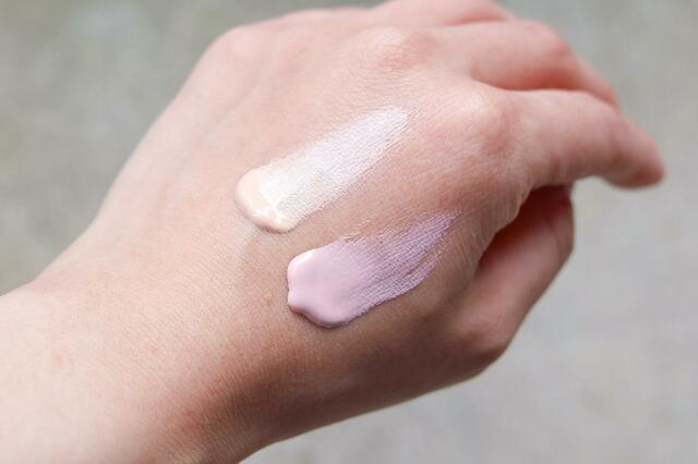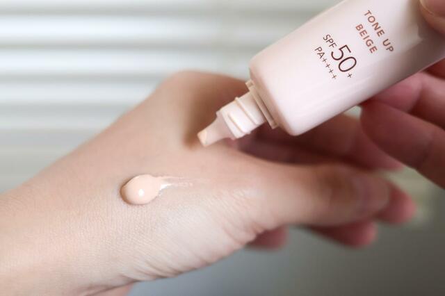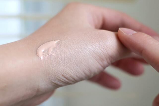 化粧水のあと、UV乳液のピュアベージュ塗った様子
