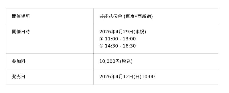 - チケットぴあ https://w.pia.jp/t/m-workshop/ ※準備が整い次第、販売画面は表示されます