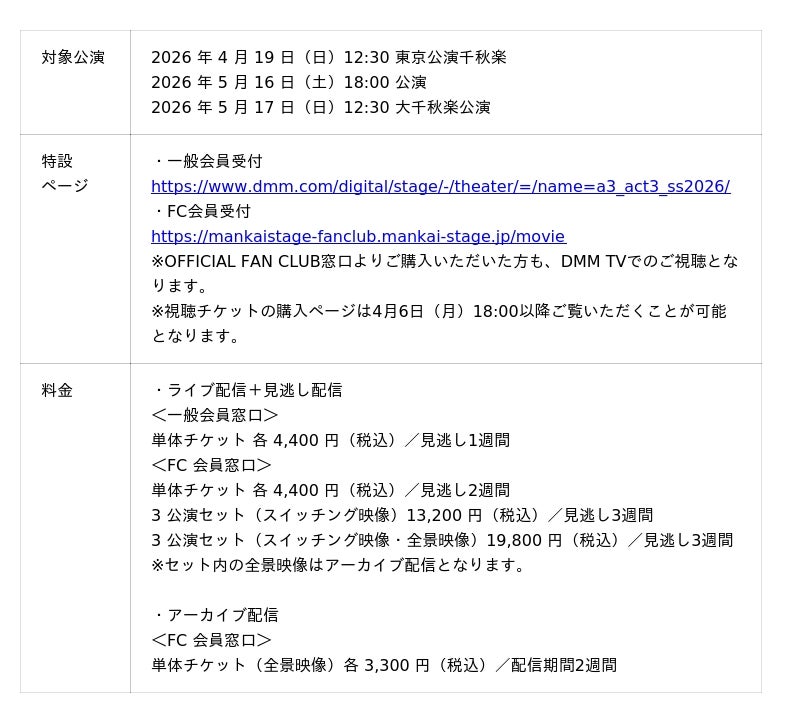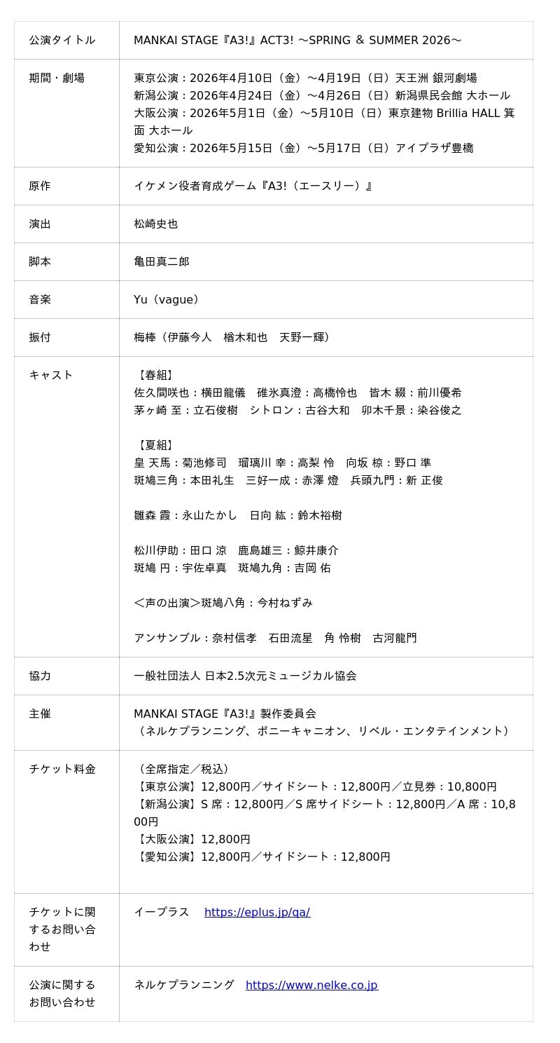 引き続き、MANKAI STAGE『A3!』ACT3! ~SPRING & SUMMER 2026~にぜひご期待ください。
