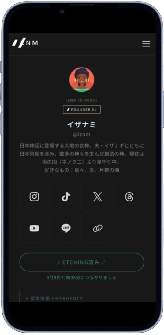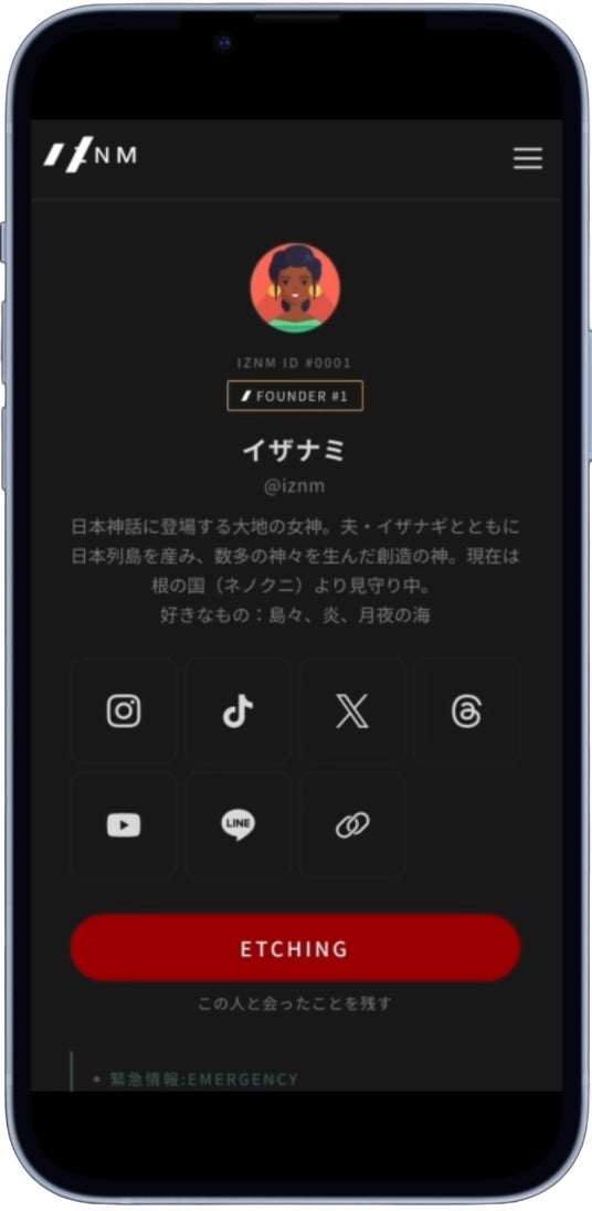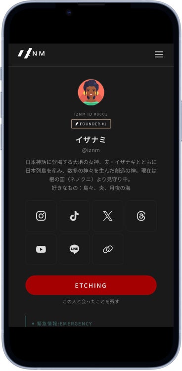 プロフィール共有、ETCHINGによる会った記録、緊急情報アクセスをひとつに。茅ヶ崎発のライフスタイルIDサービス「IZNM(イザナミ)」が新プロダクトをリリース