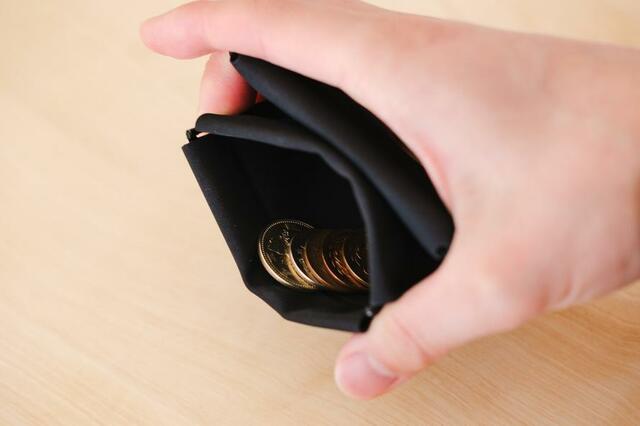 コインポケットには折りたたんだお札とそのお釣り。