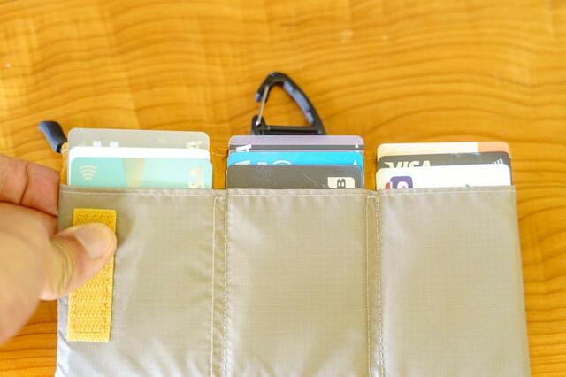強力なマグネットで勝手に開く心配がないため、私はここにクレジットカードと身分証などを4〜5枚ほど入れています。