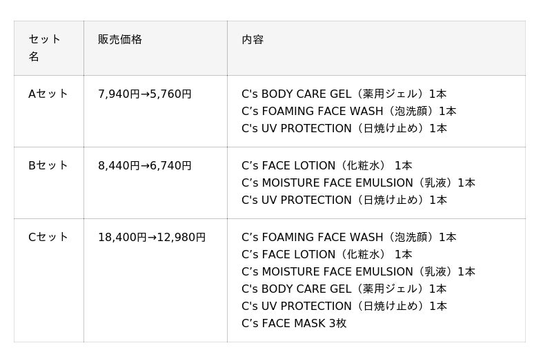 ■スキンケアブランド『C’s(シーズ)』セット商品概要