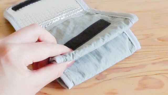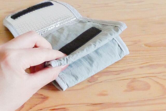 開閉部分には、面ファスナーを採用。さらに持ち手付きで、安心して持ち運べるのがうれしいポイントです。