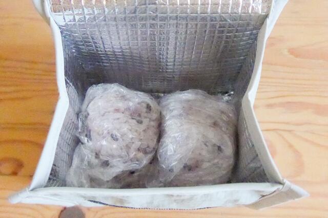 まずは、ごはん120gほどで作ったおにぎり2個を入れてみることに。