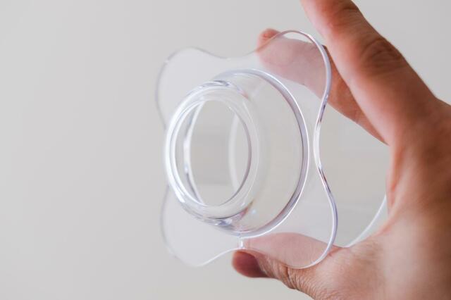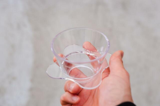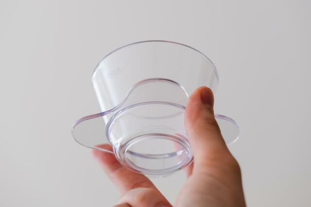 見た目はガラスのような透明感がありますが、素材はトライタン樹脂製。