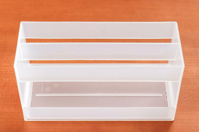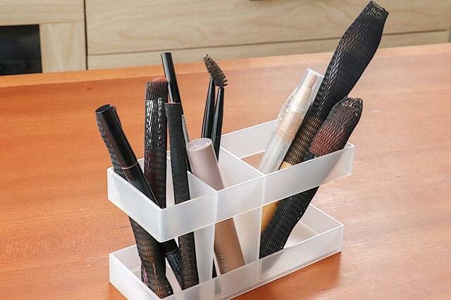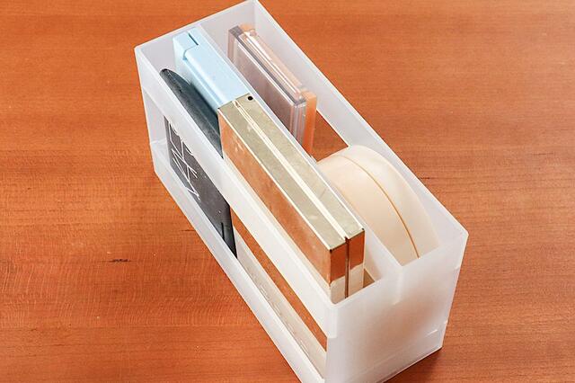 注意したいのは、コスメであれば単色アイシャドウ、文房具であればふせんやクリップのような小さなアイテムの収納には向いていないこと。