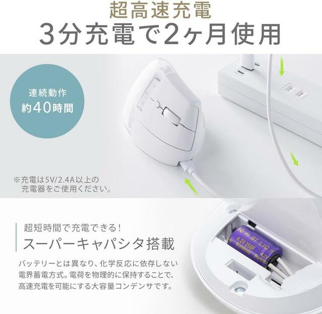 「3分充電で2ヶ月使える」超高速充電。マウスとしてもかなりのハイスぺ!