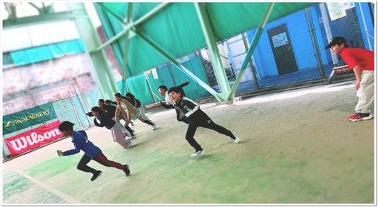 初日は、ITC神戸 インドアテニススクールにて、技術レベル別に分かれて練習を行いました。普段とは異なるコーチや仲間との環境に、最初は少し緊張した表情も見られましたが、レッスンが進むにつれて積極的なプレーが増え、上達を目指して懸命にボールを追う姿が印象的でした。