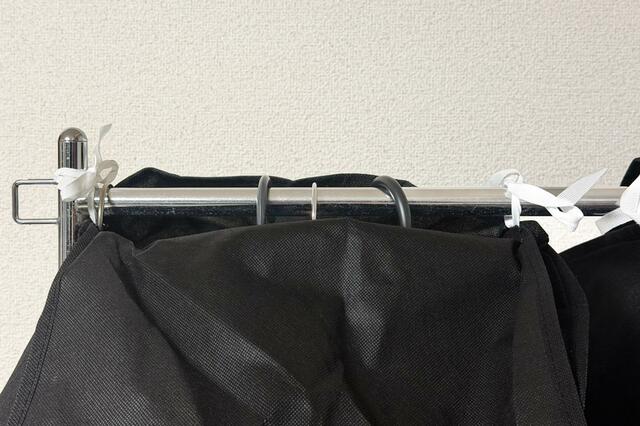 設置方法は、上部の紐でハンガーラックやクローゼットのポールにくくりつけるだけ。