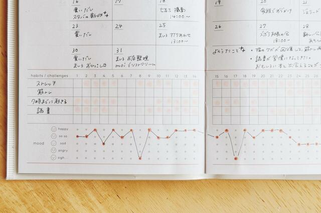 ハビットトラッカーの下には、気分の記録ができる欄もあります。