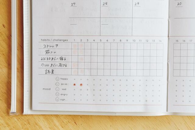 できた日にはチェックを入れたり、印を付けて「見える化」するのがポイント。