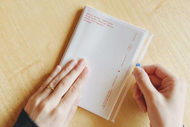 MARK’S(マークス) 「ファンログ ライフログ用日付フリー手帳 2日1ページ A6正寸 クリアスライドジッパー アイボリー」 1,650円(税込)