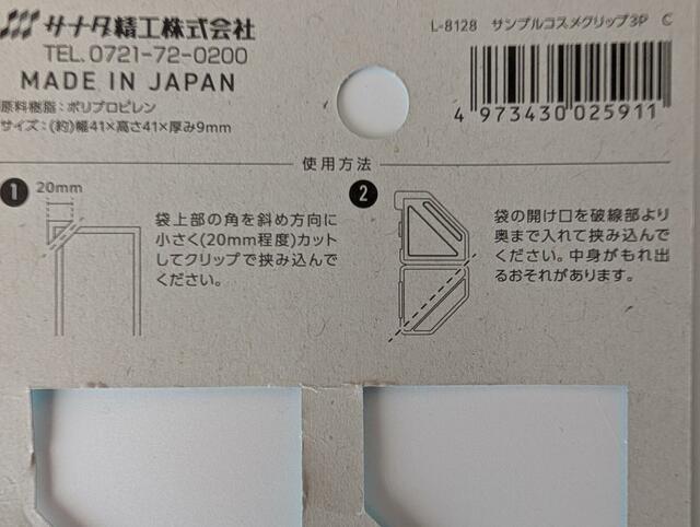 使い方はとってもカンタン。あまってしまった試供品を、このクリップで挟むだけ。