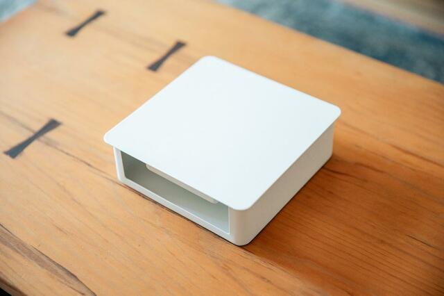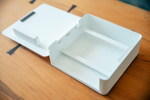 スチール製の鍵収納アイテムで、サイズは横15.8×奥行き5.5×高さ15.8cmとコンパクト。