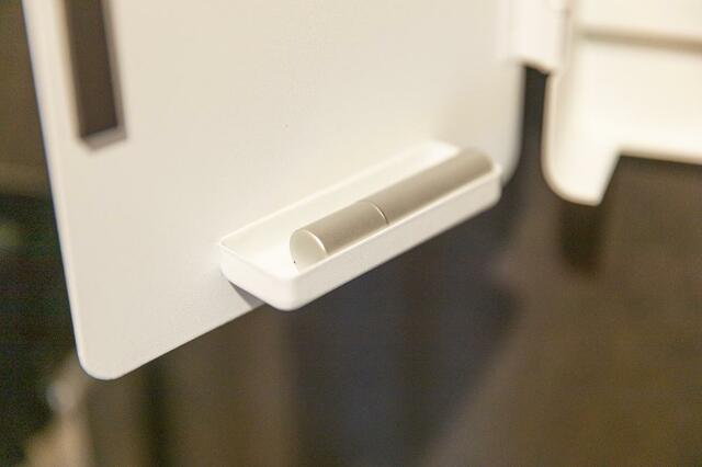 背面には大きなマグネット。思った以上に安定感があり、頻繁に開け閉めをするドアにも安心して付けられます。