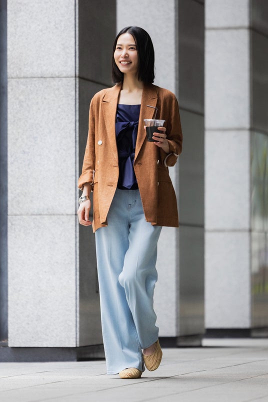 肩掛けやラフに羽織るアレンジで、印象はより自由に。