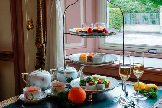 英国式三段のティースタンドで提供し、文化財建築ならではの落ち着いた空間の中で、京都の初夏のひとときを涼やかにお過ごしいただけます。