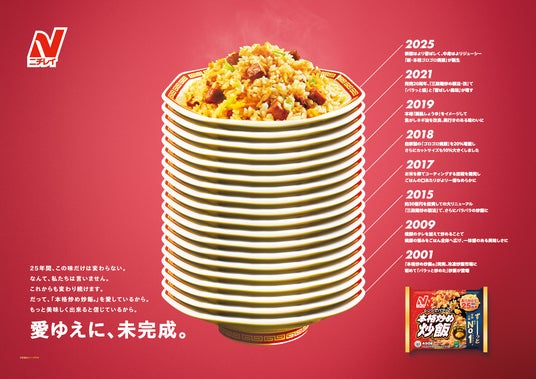 ニチレイ『本格炒め炒飯(R)』はおかげさまで「25年連続売上No.1(※1)」および「2025年の冷凍食品全体における購買金額No.1(※2)」を達成いたしました。これまで多くの生活者にご愛顧いただいたことへの感謝を届けるべく、『本格炒め炒飯(R)』の25年間の歴史と進化を体感できる特別仕様車両を運行いたします。