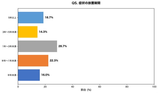 【調査結果】半数以上が1年以上症状を放置、5年以上も18.7%