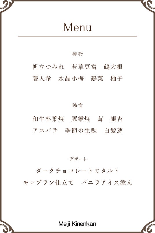 レストラン公式Instagram:https://www.instagram.com/meijikinenkan_gourmet/