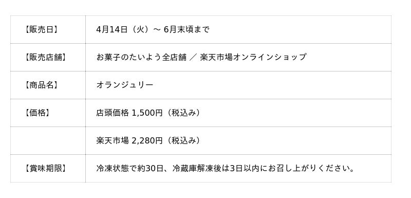 株式会社太陽社(所在地:千葉県匝瑳市飯倉293、代表取締役:片岡正裕)が展開する千葉県で長年愛される菓子店「お菓子のたいよう」は、4月14日の「オレンジデー」に合わせ、千葉県産米粉を100%使用したグルテンフリーのバウムクーヘン「オランジュリー」を、4月14日(火)~ 6月末頃までの期間限定で復刻販売いたします。