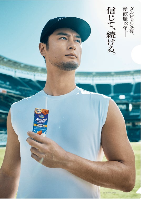 「アーモンド・ブリーズ」200mlを2本お買い上げでダルビッシュ有選手オリジナルクリアファイルを、12本お買い上げでダルビッシュ有選手のプリントサイン入りオリジナルエコバッグをプレゼントします。