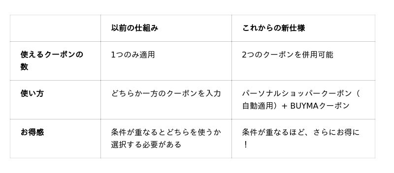 こうした課題を解決し、よりお得・便利にお買い物を楽しんでいただくため、2つのクーポンが併用できるように改善しました。
