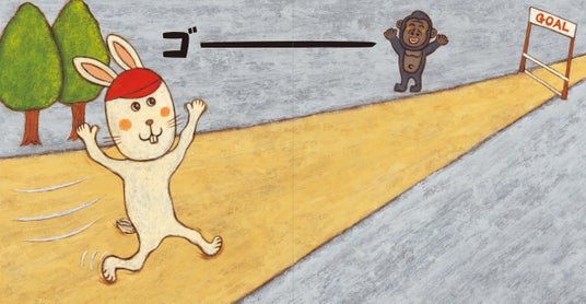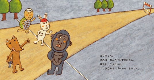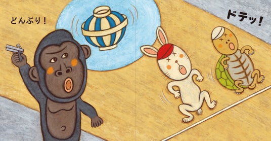 ボケまくり! 動物たちのズッコケかけっこウサギとカメがかけっこを始めました。ゴリラの合図でスタートです。「いちについて、よーい……どんぐり!」。ゴリラがふざけるたびに、ウサギとカメはドテッとズッコケて、なかなか走り出せません。ボケまくるゴリラに、読み聞かせで大ウケすることまちがいなし!