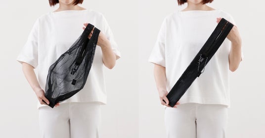 2024年2月に数量限定で発売した「メッシュバッグ」は、両端を引っ張ると一気に帯状にたためる構造はそのままに、丈夫で細やかなメッシュ素材を採用し、通気性の良さと軽やかさを兼ね備えた人気ラインです。発売時より、たっぷり入る楕円形状の「25L」と、しずく形状でコンパクトな「Drop 9L」の2型で展開しており、ご好評につき現在はともに定番商品となっています。