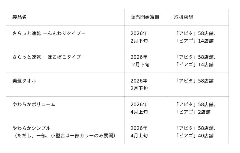 そしてこの度、第4弾・第5弾として2026年2月下旬より「アピタ」「ピアゴ」の店舗、合計98店舗にて取り扱いを開始いたしました。(一部、製品によって対象外の店舗あり)