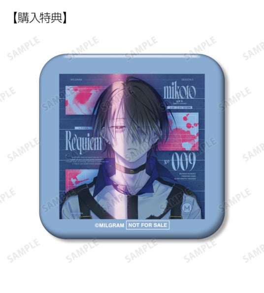 該当商品を1個ご注文ごとに、予約購入特典として「MILGRAM 第三審シングル ミコト『レクイエム』 ジャケットスクエア缶バッジ AMNIBUS限定特典」を付属いたします。
