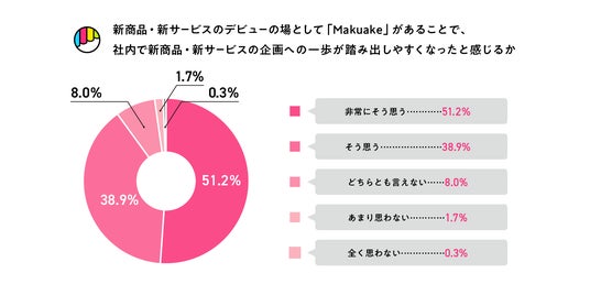 実行者の約9割が、「Makuake」があることで「新商品企画への一歩を踏み出しやすくなった」と回答しています。「Makuake」は企業において新商品がお蔵入りしてしまう課題に対し、一定の寄与をし、新商品デビューを後押ししていると言えます。