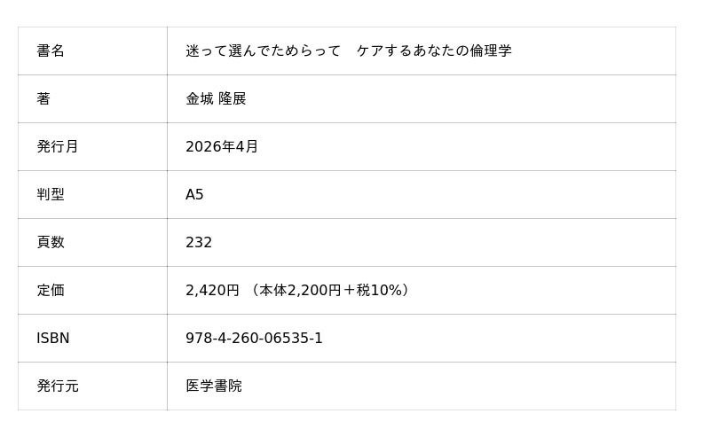 ケアするあなたの倫理学』(著:金城隆展)を2026年4月6日に刊行しました。