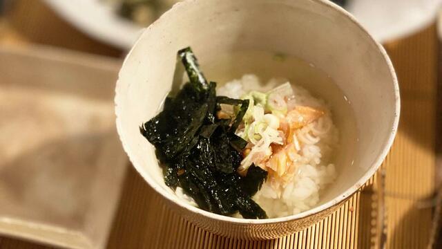 「今日はお茶漬けでいいか?」ということになり、「鮭茶漬け」です。昆布と鰹節の出汁で作ったら、めちゃ美味しい(飲みすぎた翌日に茶漬けはピッタリ)。さ、今日は早寝しましょ!