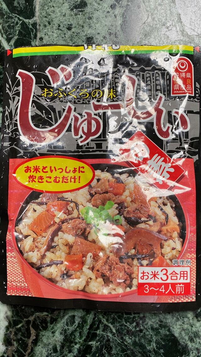 炊き込みご飯の素である。「これだ!」米を研いで炊きました。具が入っているので、炊けばそのまま食べられる。私、沖縄に行ったのは何年前だったかなあ……と懐かしくなる。