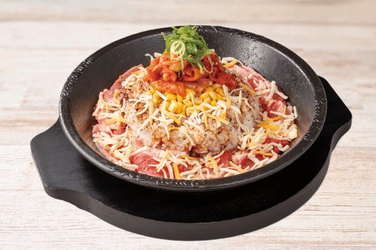 ペッパーランチの看板商品であるペッパーライスに、「牛カルビキムチーズペッパーライス」「ブロッコリーチキンペッパーライス」の2種類が。ステーキ商品にはカルビメニューが複数登場。さらに、ランチメニューには「カルビキムチ焼飯」を新たに追加いたします。