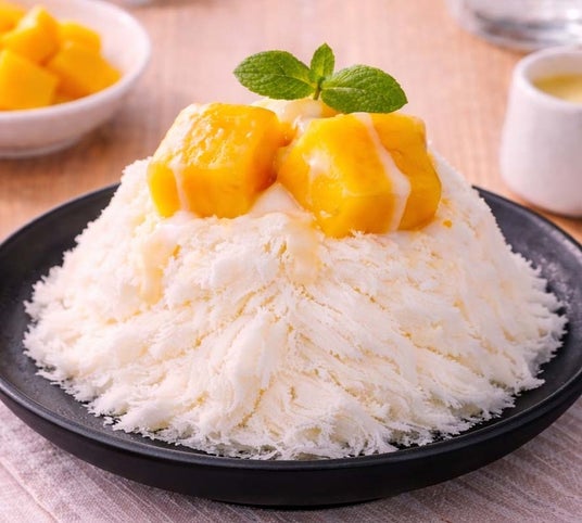 ふわりと口の中で溶けていく、雪のような食感のかき氷です。マンゴーとクリーミーなミルクのテイストで召し上がりください。