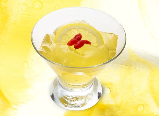 ぷるんとした透明ゼリーに、さっぱりとしたレモンシロップを合わせた爽やかなデザートです。