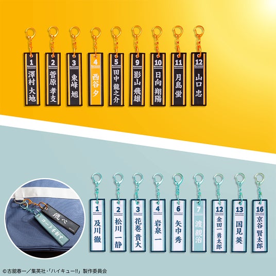 A賞は、烏野高校の「影山飛雄」を細部まで再現した約20cmのフィギュアです。B賞は、青葉城西高校の「及川 徹」の約20cmフィギュアで、A賞と並べてお楽しみください。C賞には烏野高校の「日向翔陽」「影山飛雄」「月島 蛍」の3人、D賞には青葉城西高校の「及川 徹」「岩泉 一」「国見 英」の3人をラインアップしたお座りマスコットをご用意しました。持ち運びがしやすいサイズ感で、ジャージは着脱が可能です。E賞は、試合中の姿を再現したゆらゆら揺れるアクリルスタンドです。タイトー描き起こしデフォルメイラストを使用しており、デスクや棚に飾ってお楽しみいただけます。F賞は、ふわふわの手触りが楽しい缶バッジ、G賞は表面にキャラクターの名前と背番号、裏面に各学校の横断幕がデザインされたフライトタグをラインアップしました。本くじでしか手に入らないアイテムを、この機会にぜひゲットしてください。