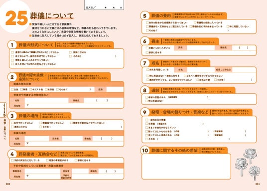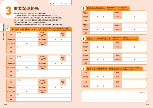 20年以上終活の現場を見続けてきた専門家・山田静江さんが、「絶対に必要」と思う項目を網羅しつつ、簡単に書けるよう監修。銀行口座や連絡先といった必須項目だけでなく、マネープランの見直しにも使える一冊。ユーモラスな動物のキャラクターのイラスト入りで明るいデザインなので、子どもから親に「私も書くから一緒に書こう」と、気軽に書き始めるきっかけを後押ししてくれます。思い出の記録もできるので、思い出話をしながら書くのがおすすめです。 ゴールデンウィークやお盆の帰省シーズンに、家族みんなで重要情報の整理を始めてみてはいかがでしょうか 。