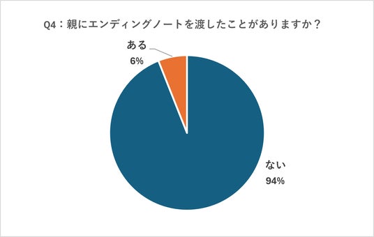 - 親にエンディングノートを渡したことがない人は94%。4割の人が「渡しづらいから」と回答 。