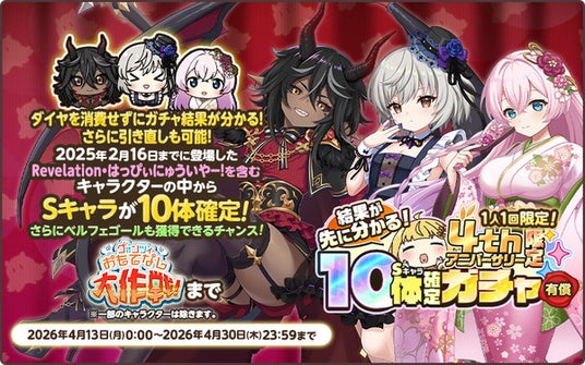 2026年4月13日(月)0:00より、『4thアニバーサリー限定結果が先に分かるS10体確定ガチャ』が開催中です。