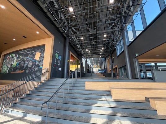 福祉センターと科学センターを複合・共有化し、世代や分野を超えてつながりを生み出す交流拠点として整備しました。誰もが容易に施設が使用できるよう、エレベーターに加え、全フロアにアクセス可能なスロープを設置し、車いすやベビーカーでも利用しやすい設計としています。